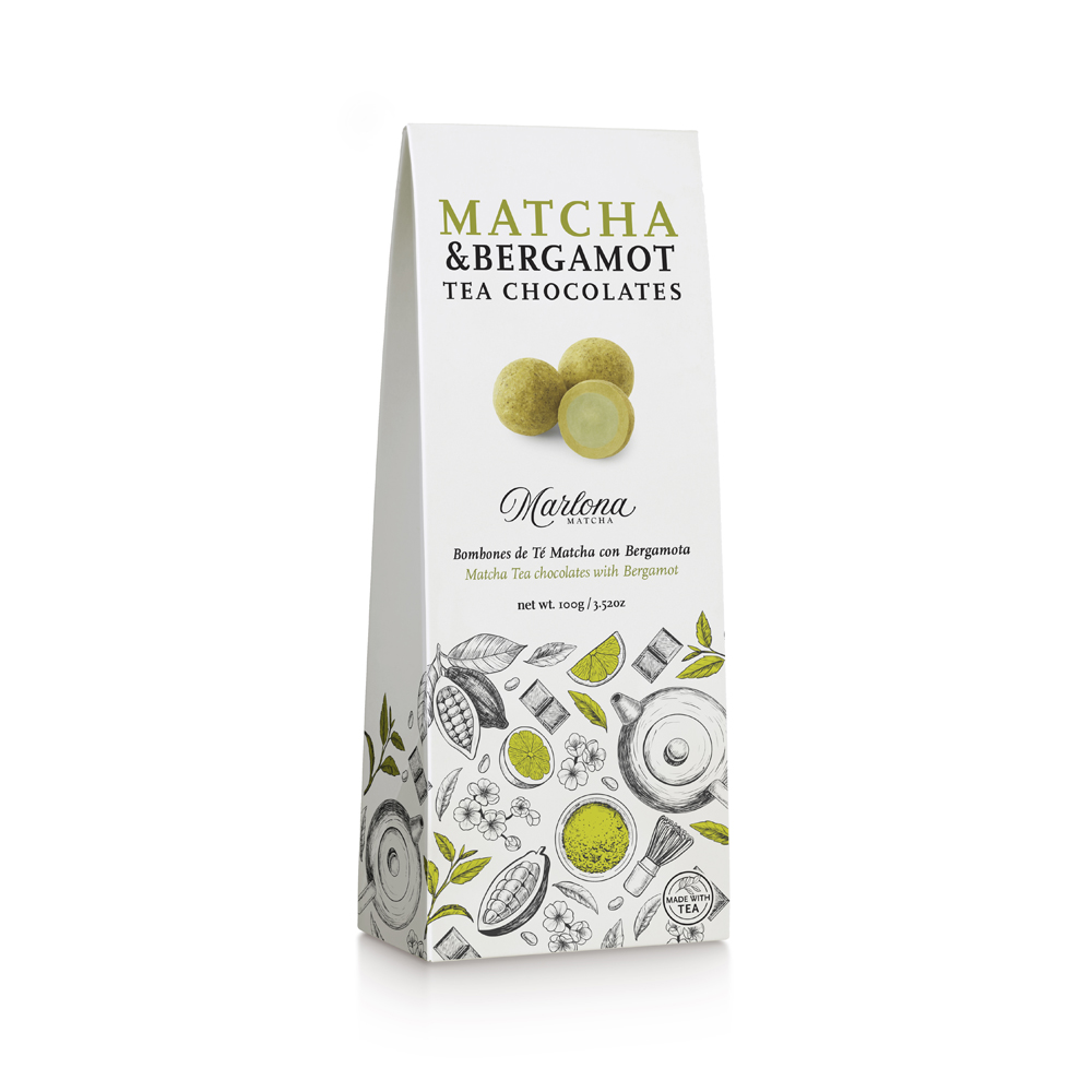 Chocolate blanco (azúcar, manteca de cacao, leche desnatada en polvo, materia grasa láctea, emulgente (lecitina de soja), aroma natural de vainilla, aroma), lactosuero, almendra, té Matcha (2,5%), manteca de cacao, cereal crujiente (harina de arroz, azúcar y sal), té verde Sencha, colorante (curcumina), emulgente (lecitina de soja), aroma.